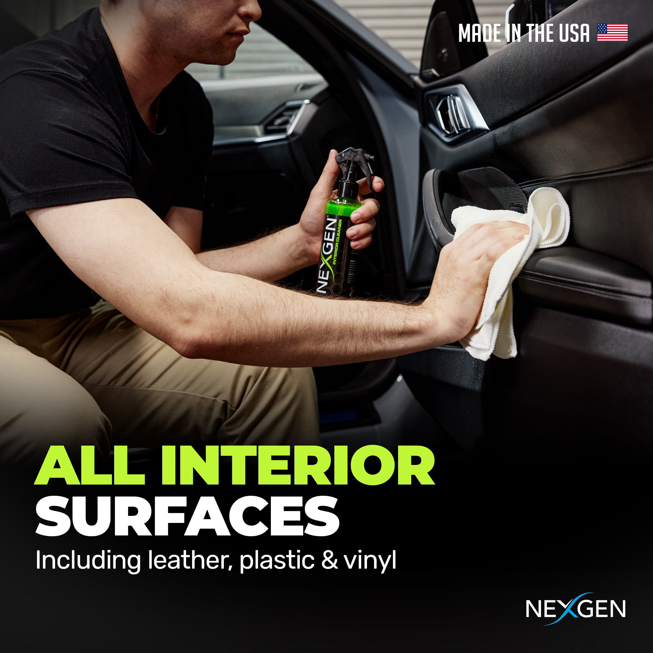 Nexgen Interior Cleaner can be used on any hard, non-porous surface in your vehicle’s interior. Leather, plastic, screens, and more are fair game.