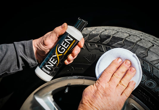 Nexgen Tire Dressing dries down fully, leaving a medium-level shine that gives your detailing job that extra touch.